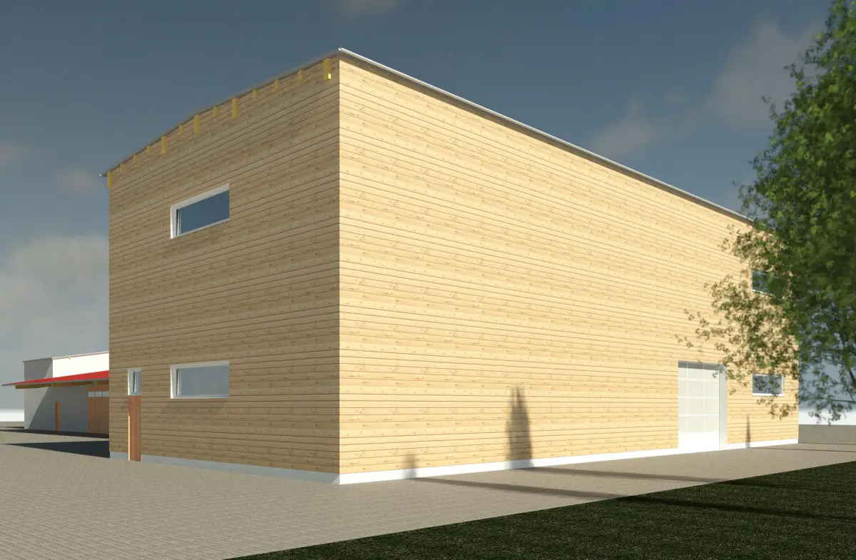 Für eine ortsansässige Bau- und Möbeltischlerei war eine räumliche Erweiterung zu planen. Die Herausforderung bestand aus dem begrenzt zur Verfügung stehenden Grundstück, den eng gesetzten Rahmenbedingungen des gültigen Bebauungsplans als auch einer Realisierung im laufenden Betrieb.