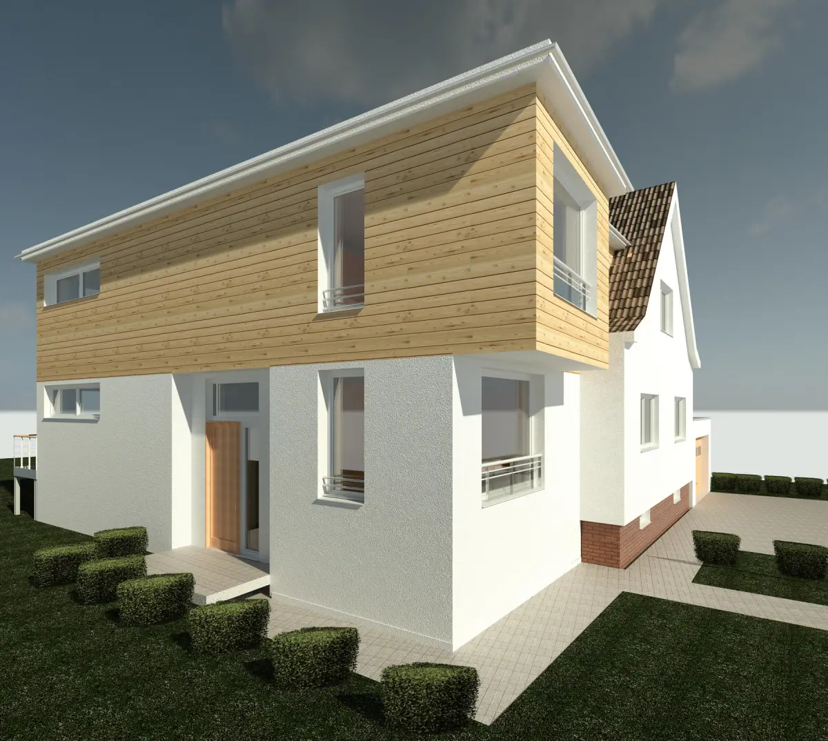 Eine junge Familie hat ein Wohnhaus aus den 1930´er Jahren mit schönem Garten gekauft. Das Raumangebot soll erweitert werden, außerdem ist eine energetische Ertüchtigung erforderlich.